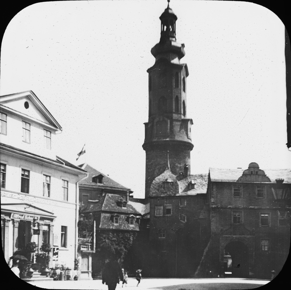 Bilden har förvarats i kartong märkt: Vårresan 1910. Weimar 8. III. Text på bild: " Der Burg".