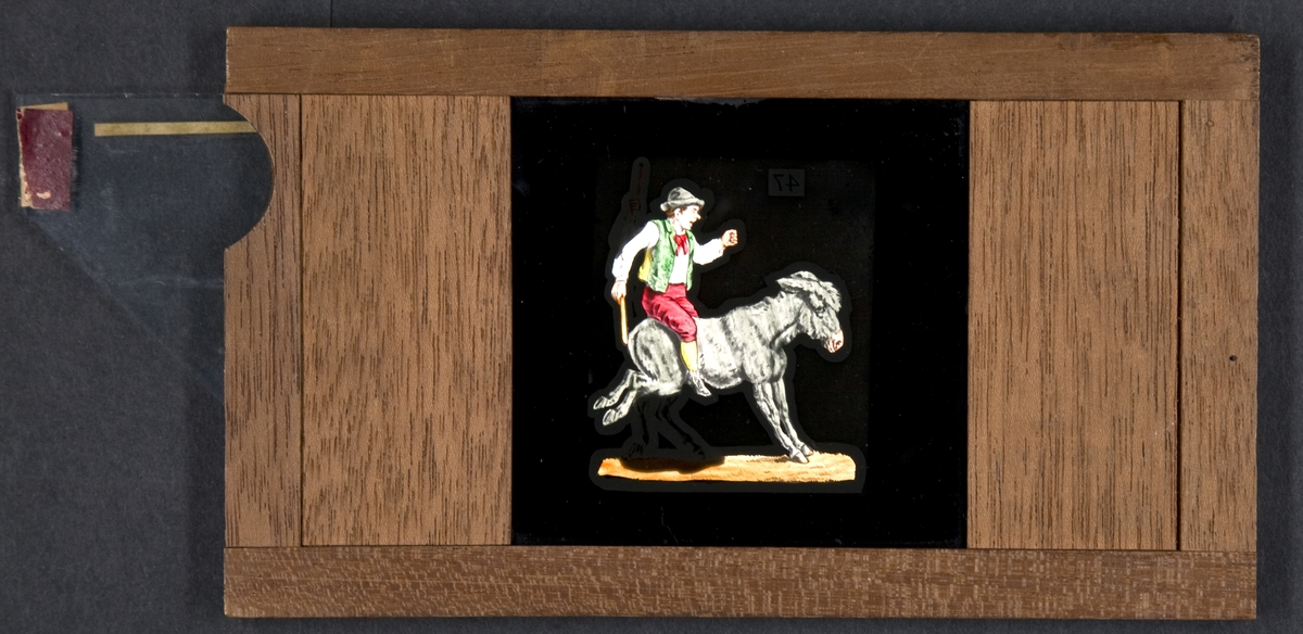 Laterna magica bild målad i färg på glasskiva.