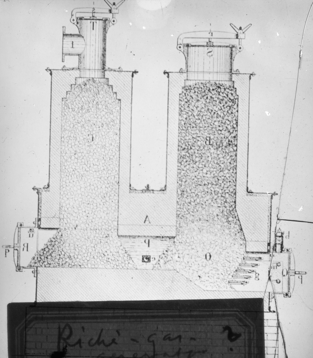 Skioptikonbild. Ritning av torveldingsugn.