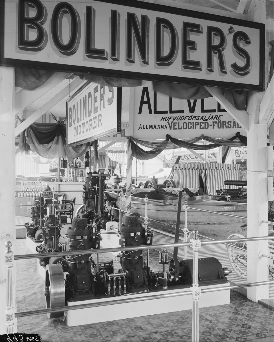 Utställningsmonter för motorer. Okänd plats.