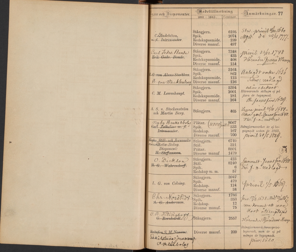 Titel: Stämpelbok för Svenska Järnverken 1864, med supplement 1867. Delvis handskrift. Ur Carl Sahlins bergshistoriska samling.