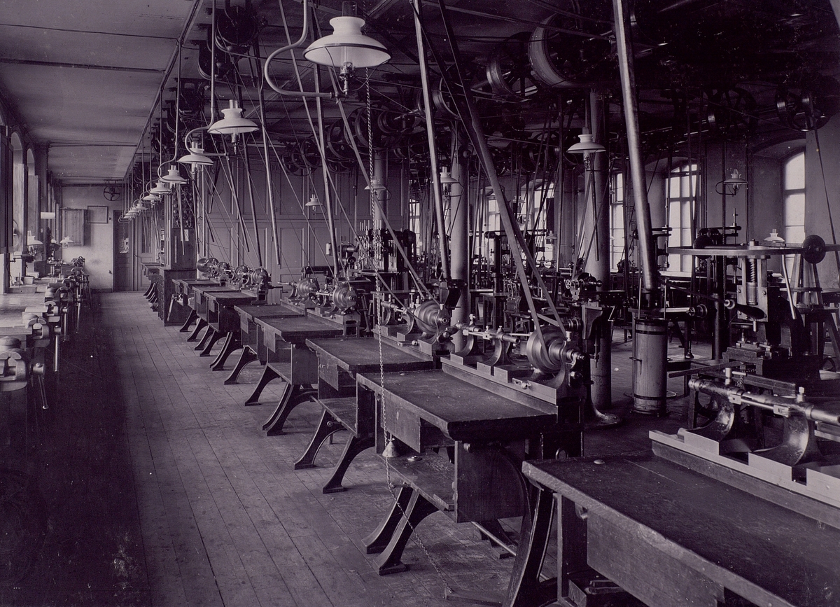 LM Ericssons verkstäder vid Thulegatan 5 i Stockholm 1901.