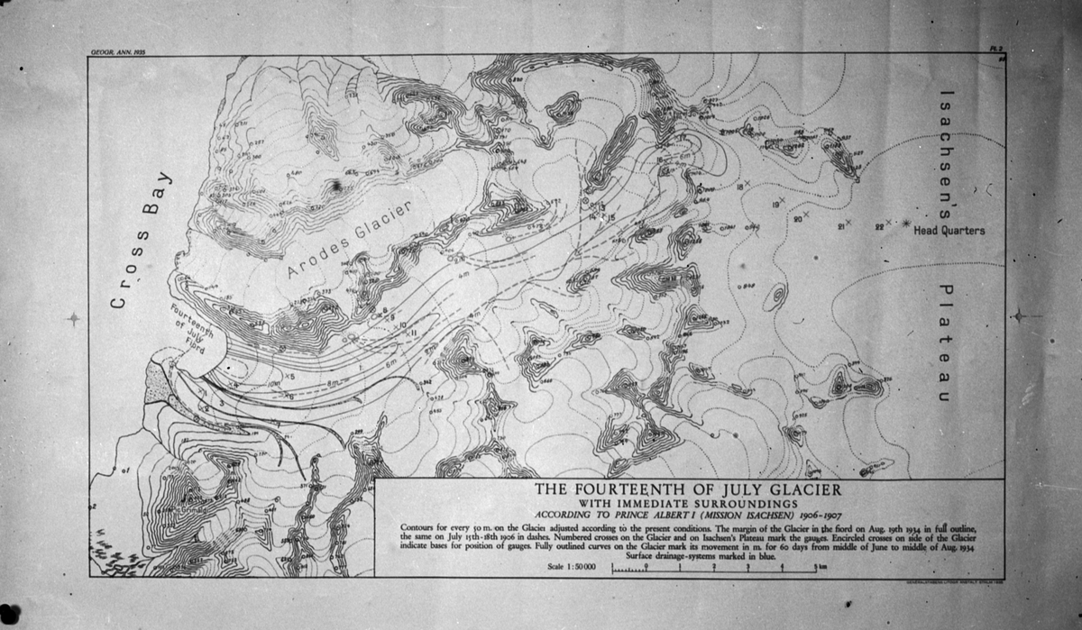 Glasnegativ med motiv av karta "The Fourteenth of July Glacier" enligt prins Albert I (Mission Isachsen) 1906-1907.