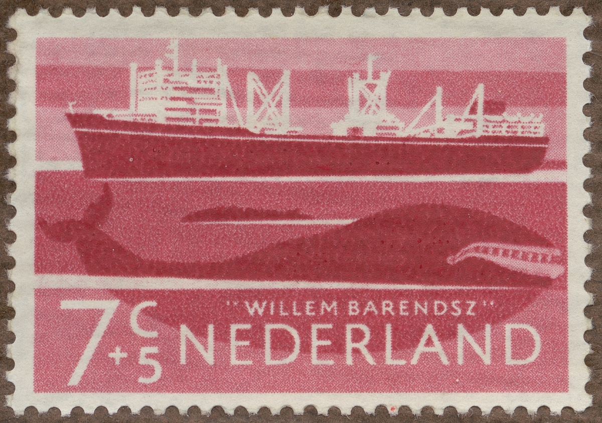Frimärke från Nederländerna, 1957. Motiv av Valfångstfartyget: "Willem Barendsz"
