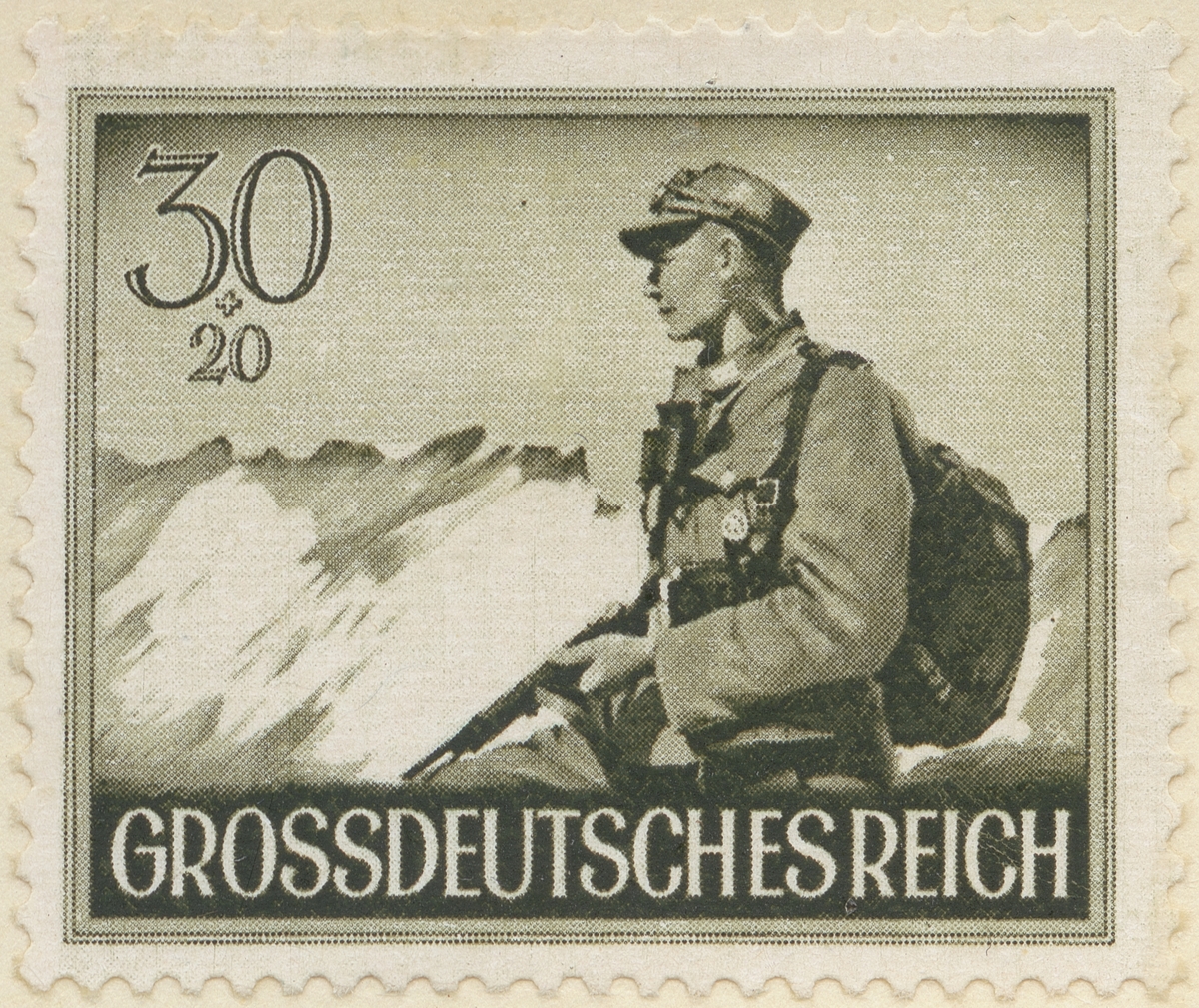 Frimärke från Tyskland, 1944. Motiv av Soldat på vakt i Alperna