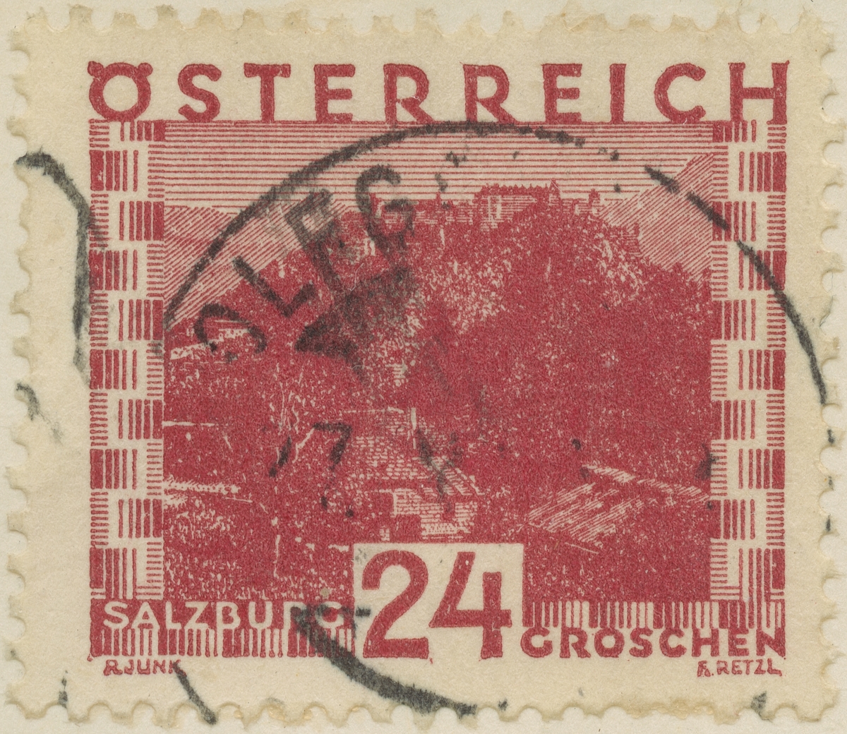 Frimärke från Österrike, 1929. Motiv av Slottet Hohen Salzburg