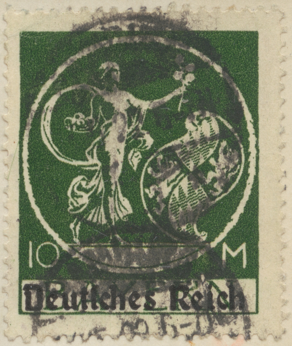 Frimärke från Bayern, 1920. Motiv av Gudinna och Vapen