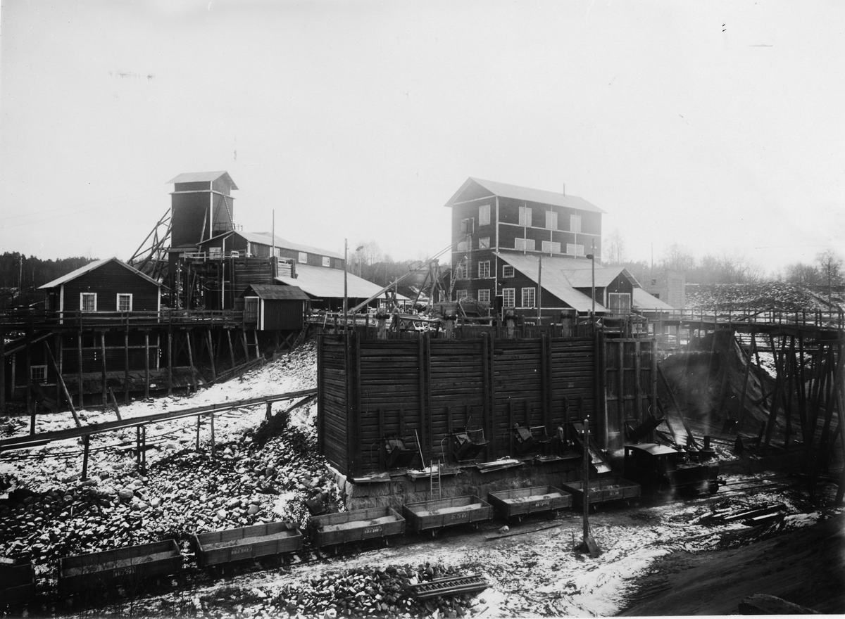 Gruvlave, skrädhus, anrikningsverk och malmfickor.