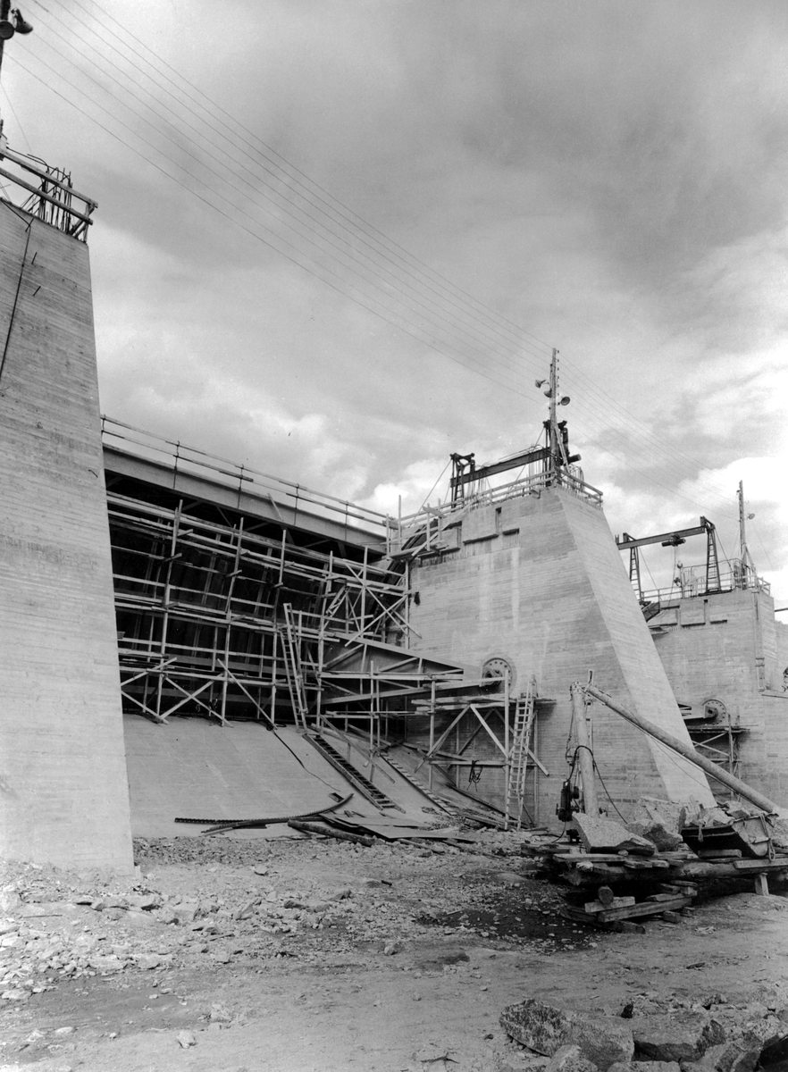 Harsprångets kraftstation. En av de tre utskovsluckorna.