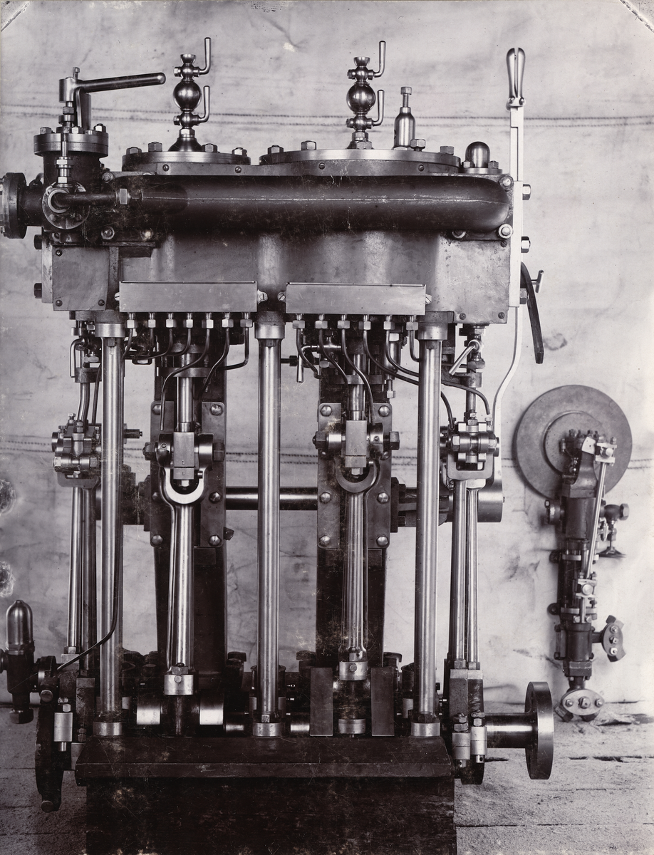 Ångmaskin byggd av Ursvikens Mek. Verkstad, Skellefteå, omkring 1915.