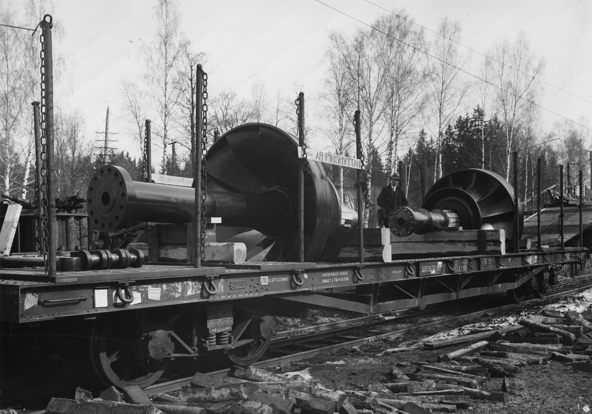Järnvägsvagn med skylt med texten "från AB Finshyttan".