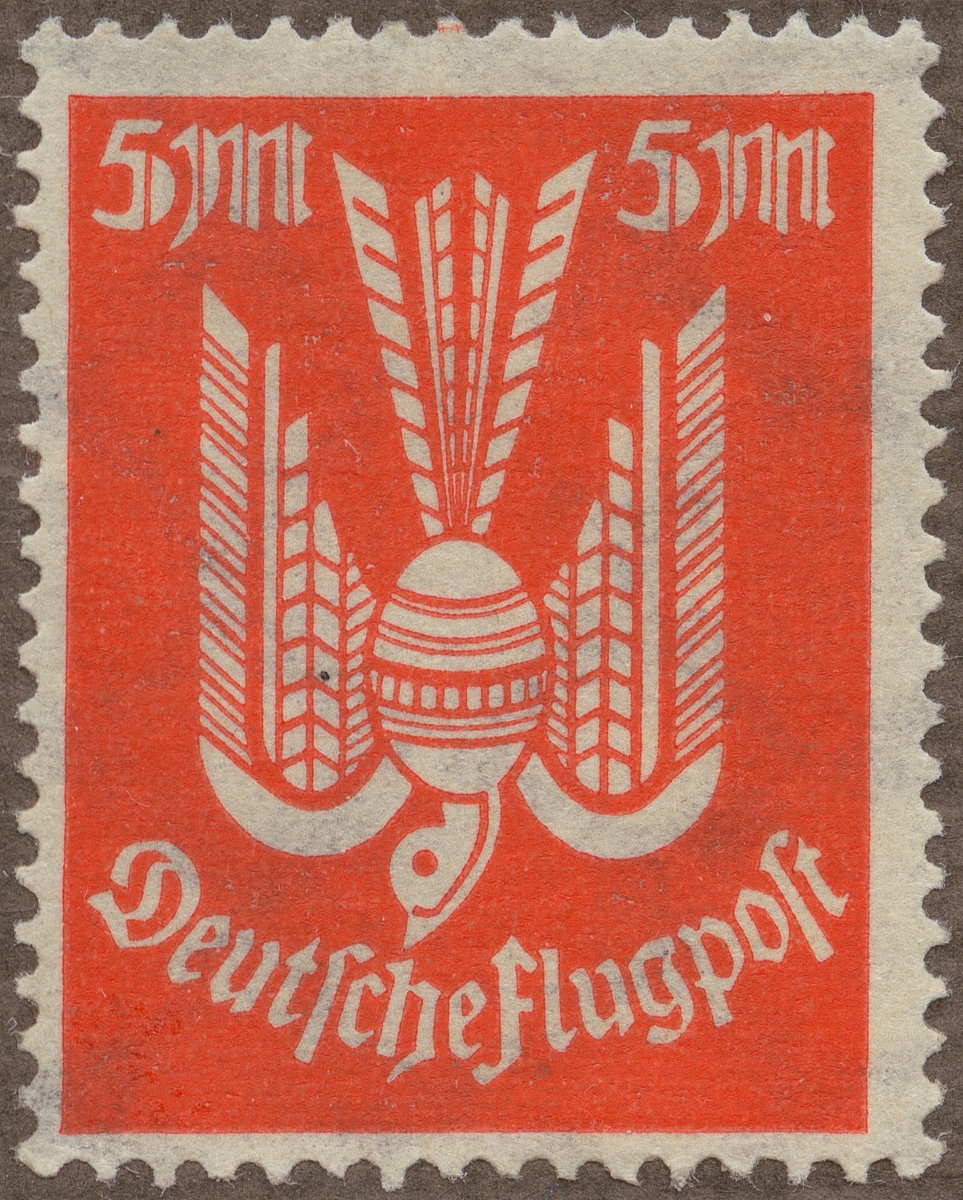 Frimärke från Tyskland, 1923. Motiv av Stiliserad brevduva: Symbol för tysk luftpost.