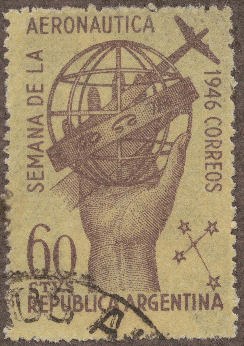 Frimärke från Argentina, 1946. Motiv av Symbol för flyget Djurkretsen Södra Korset "Flygveckan 1946 i Argentina"