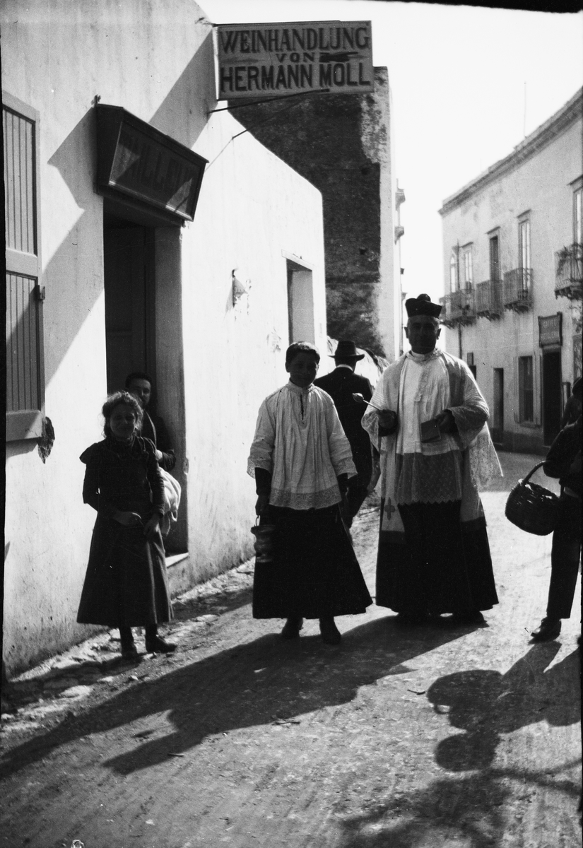 Drottning Victorias bilder. Kyrkligt folk utanför vinhandlare Herman Molls butik?