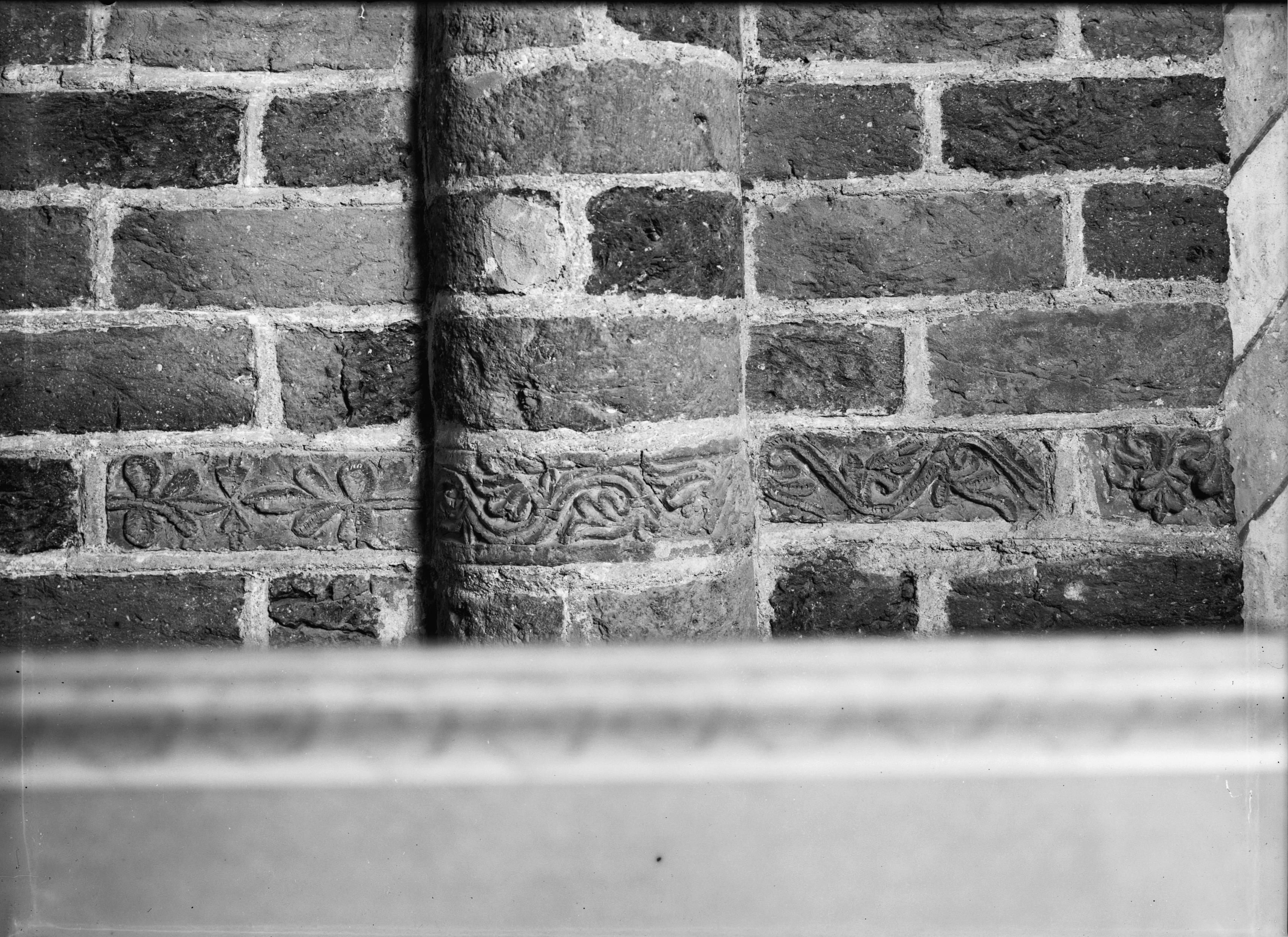 Västra sidan på femte pelaren från vänster i södra fasaden.