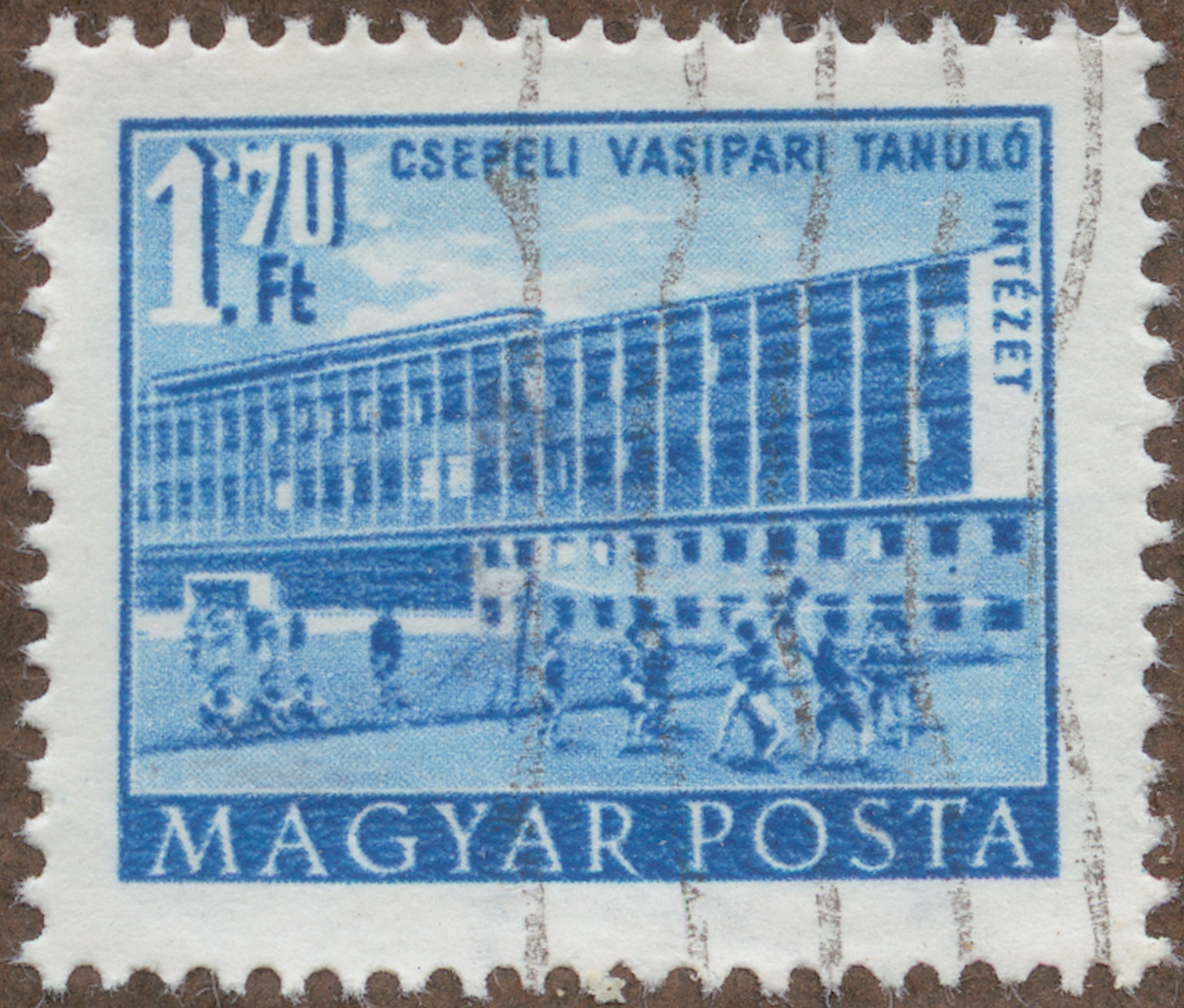 Frimärke från Ungern, 1952. Motiv av Järnskolan Csepel