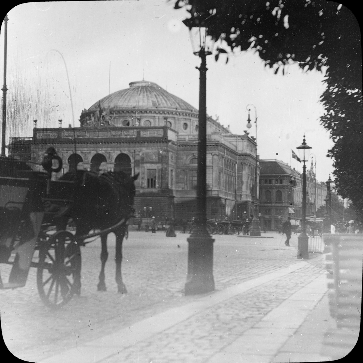 Skioptikonbild med motiv av Kungliga teatern, Det Kongelige Teater, Köpenhamn.