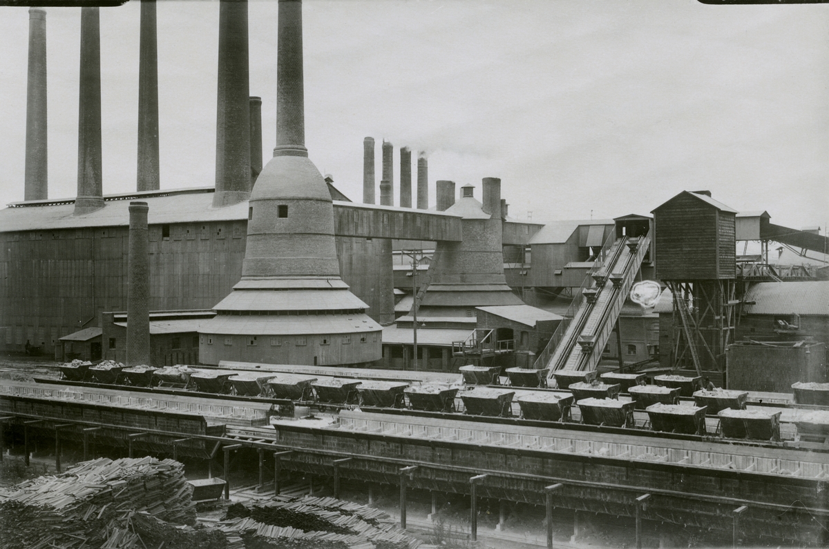 Limhamns Cementfabrik. Kalkuppfrdringen. Torkar för kalk och lera. Schakt och rostugn.