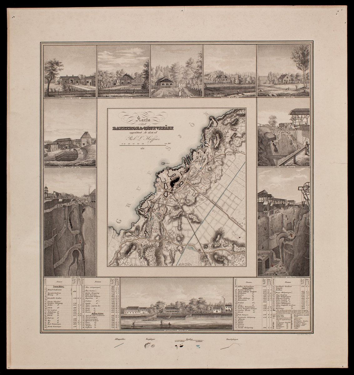 Karta motiv av Dannemora gruvfält (Dannemora grufvfält) och dess omgivningar.