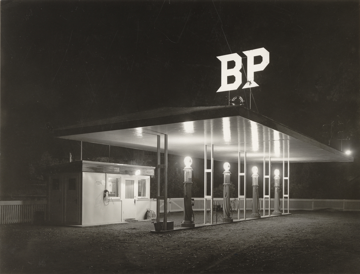BP-kiosk i Midsommarkransen i Stockholm omkring 1940. Stationen ritades av Kockums.