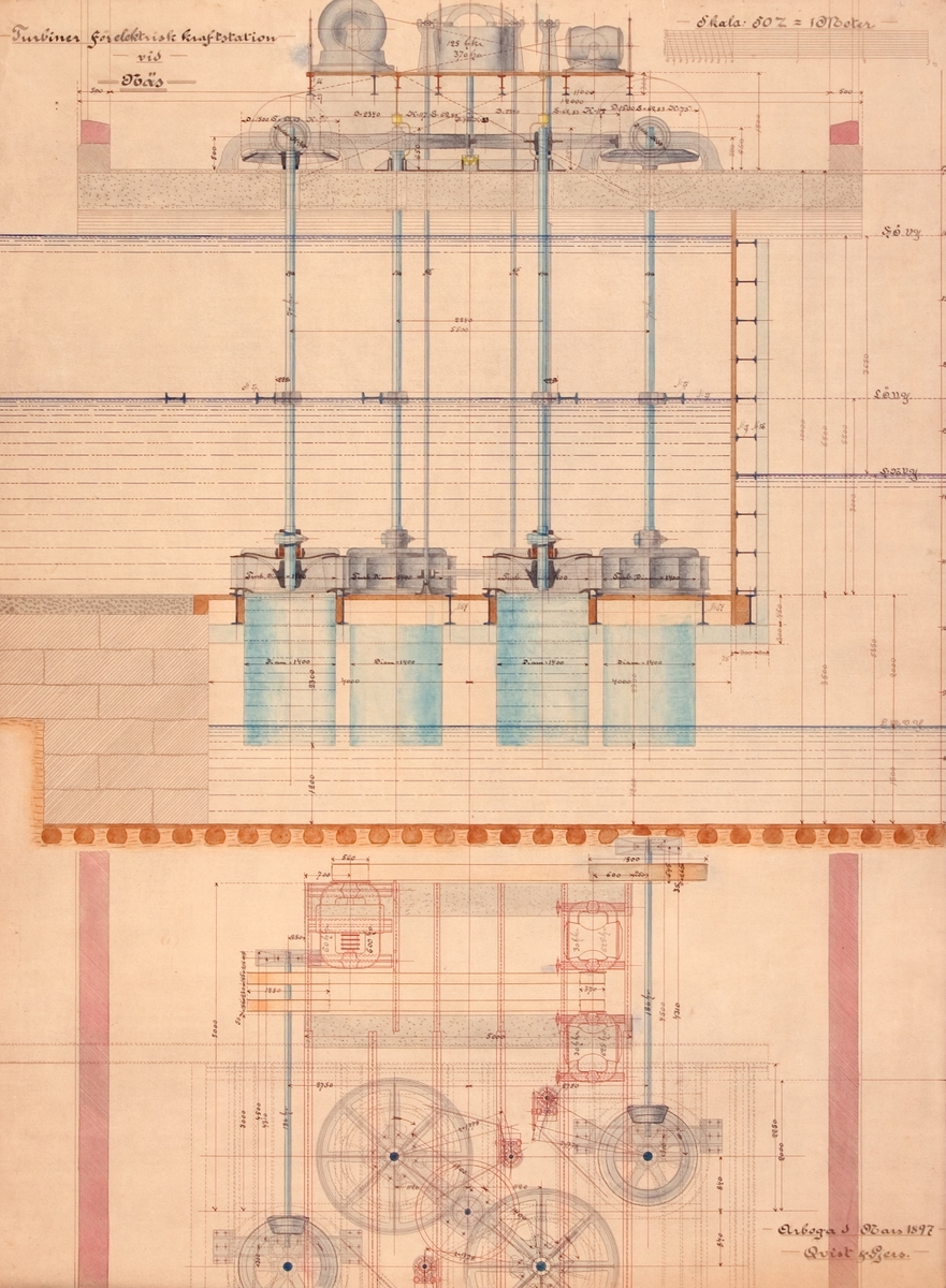 Ritning.Turbiner för Elektrisk kraftstation vid Näs.