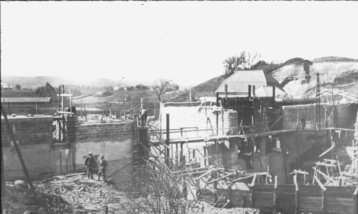 Byggherre: Byggnadsaktiebolaget Contractor, Stockholm. Hultaverket. Uppströmsvy från vänstra stranden.