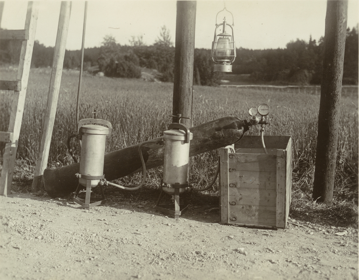 Hjälmsätrakabeln. Lufttryckningsaggregat. Ur albumet Kabelarbetet. Hjälmsälra - Norrtälje - Finnviken utfört under sommaren 1928.