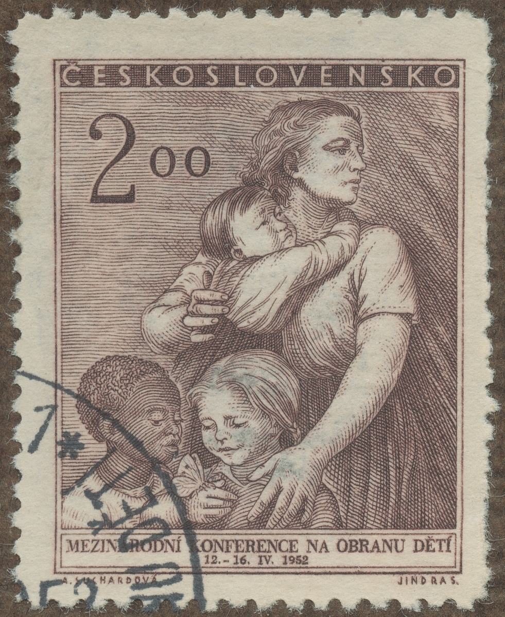 Frimärke från Tscheckoslovakiet, 1952. Motiv av Internationell Konferens i Wien För Barnens Skydd 1952