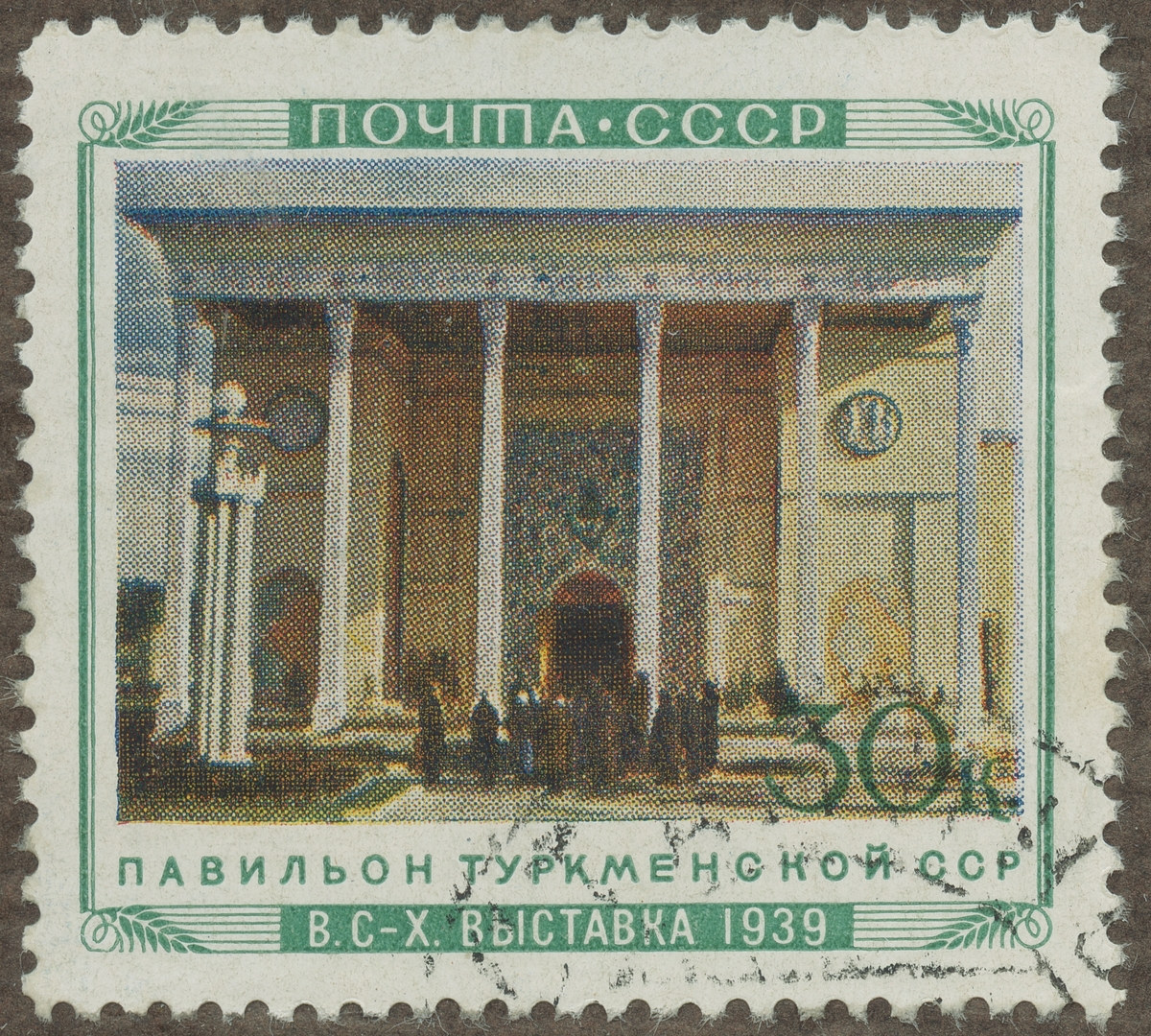 Frimärke från Ryssland, 1940. Motiv av Agrikulturutställning i Ryssland 1940 Paviljongen: Turkmenistan