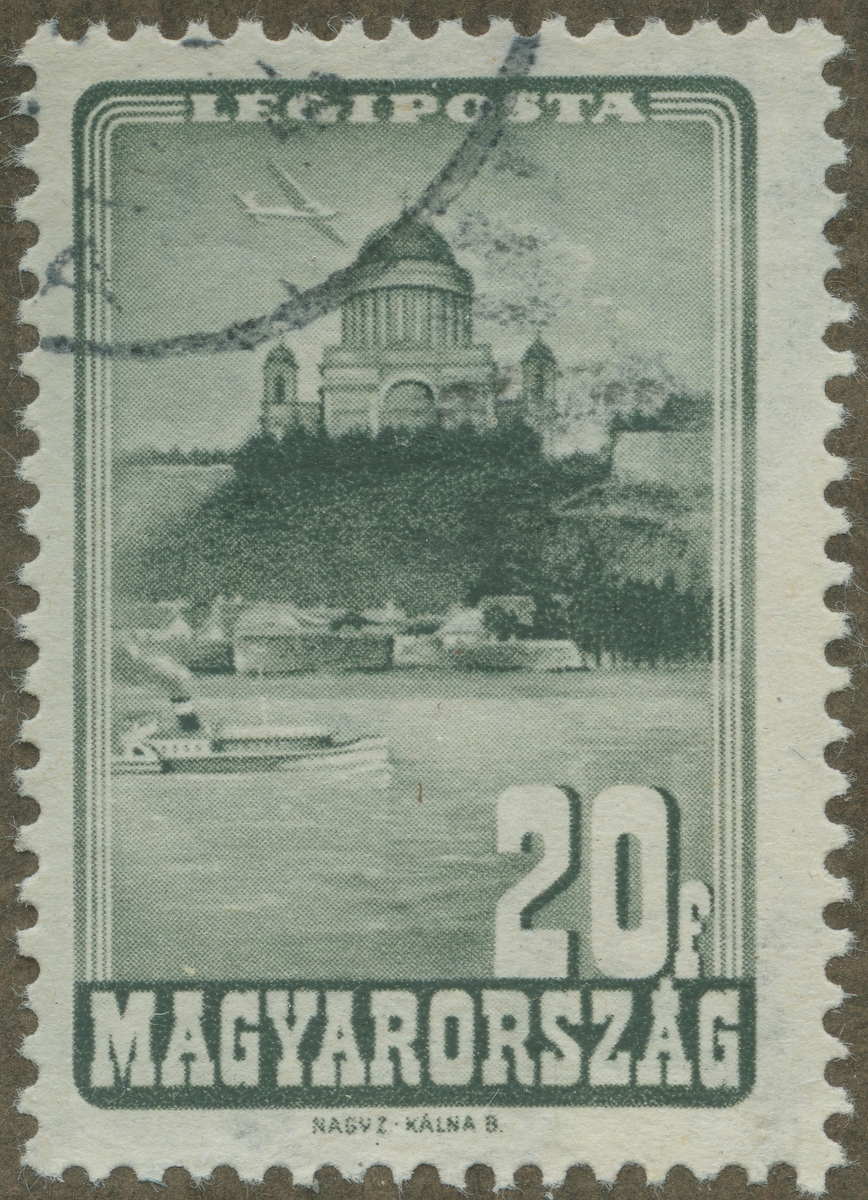 Frimärke från Ungern, 1947. Motiv av katedral i Esztergom.