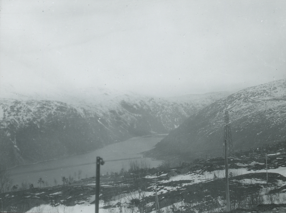 Fotografi från expedition till Spetsbergen. Vy över snötäckt bergslandskap.