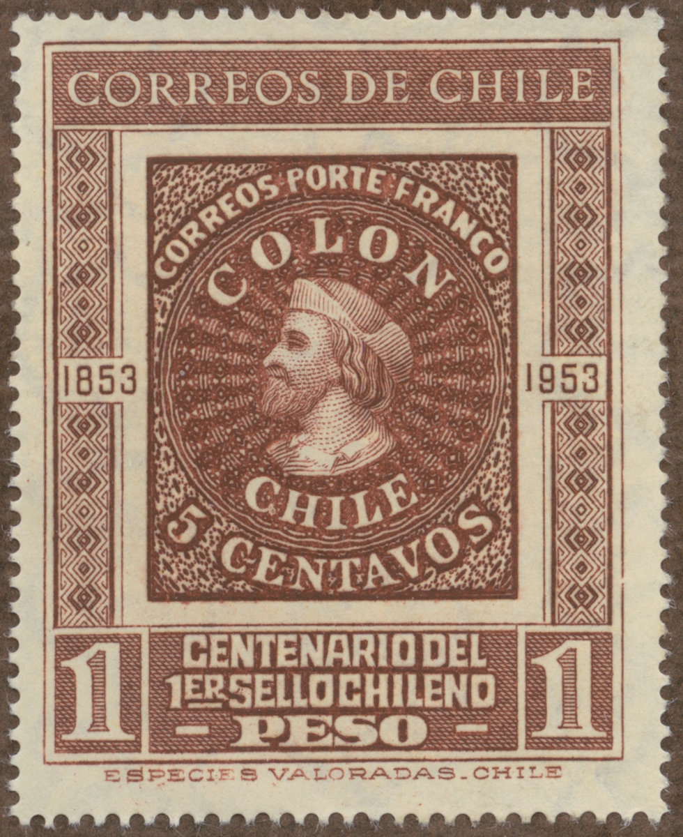 Frimärke från Chile, 1953. Motiv av Christopher Columbus Chiles frimärken 100 år 1853-1953.