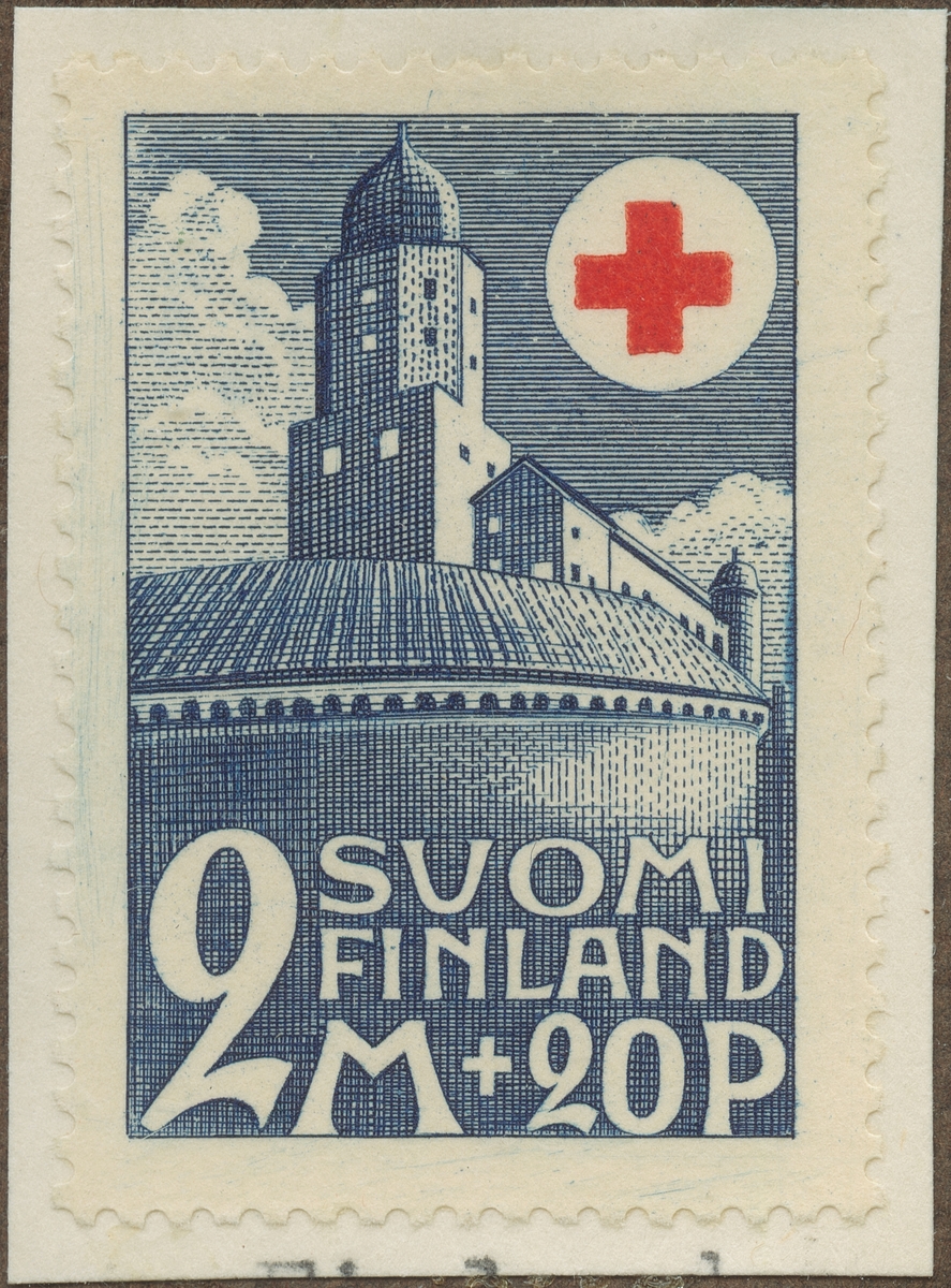 Frimärke från Finland, 1931. Motiv av Viborgs Slott Till förmån för Röda Korset