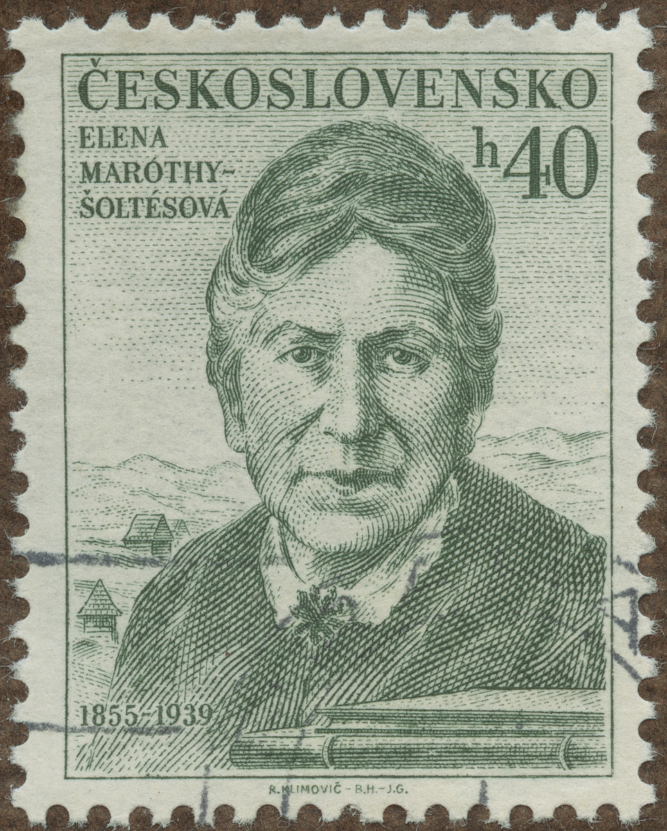 Frimärke från Tjeckoslovakiet, 1955. Motiv av Elena Maróthy-oltésová 1855-1939 Slovakisk författarinna 100-årsminne av hennes födelse: 1855-1955