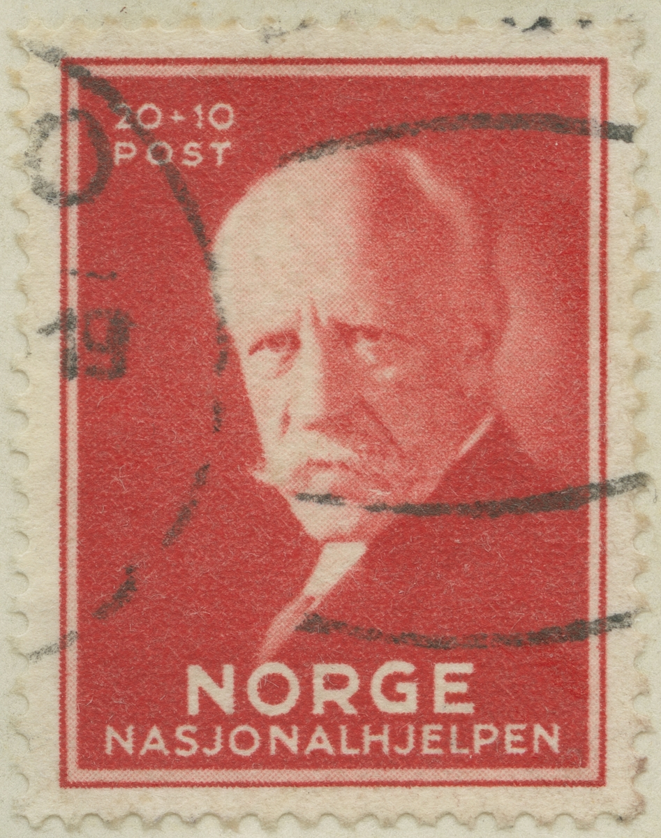 Frimärke från Norge, 1939. Motiv av Fridtiof Nansen 1861-1930. Nationalhjälpen