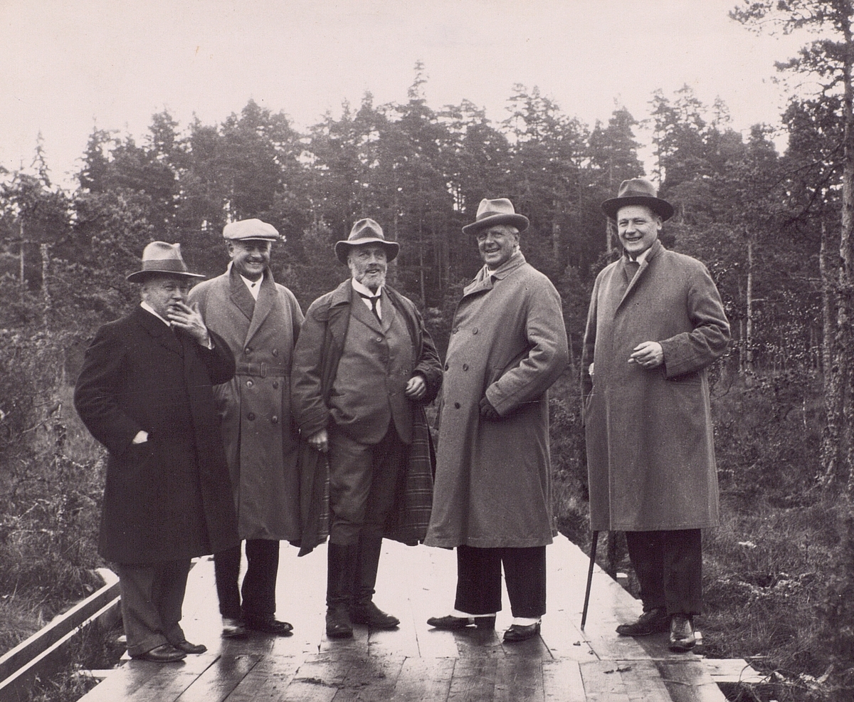 Fotot taget i Forserumsterängen den 12/9 1931. F.v. LD. Ahlbom, CHLD. Ohrling, BD. Hedén CHKK., GD. Hamilton, DIR. Hallgren.