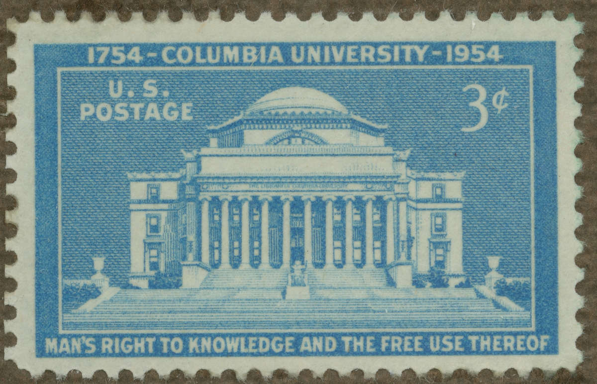 Frimärke från USA, 1954. Motiv av Columbia University, New York, N. Y. "200 årsminne: 1754-1954".