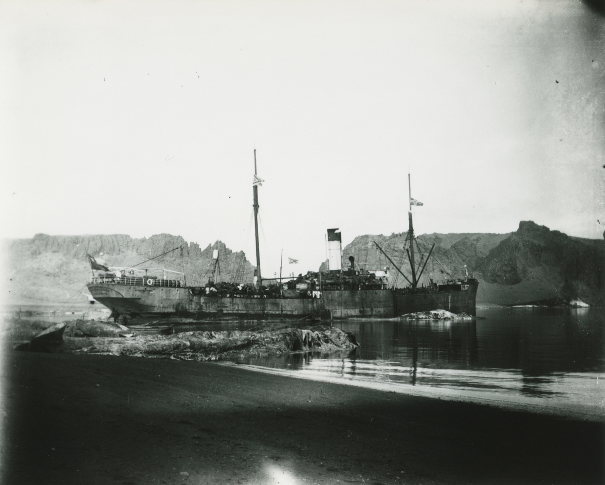 Bild från expedition i Antarktisområdet. Motiv av fartyg och berg.