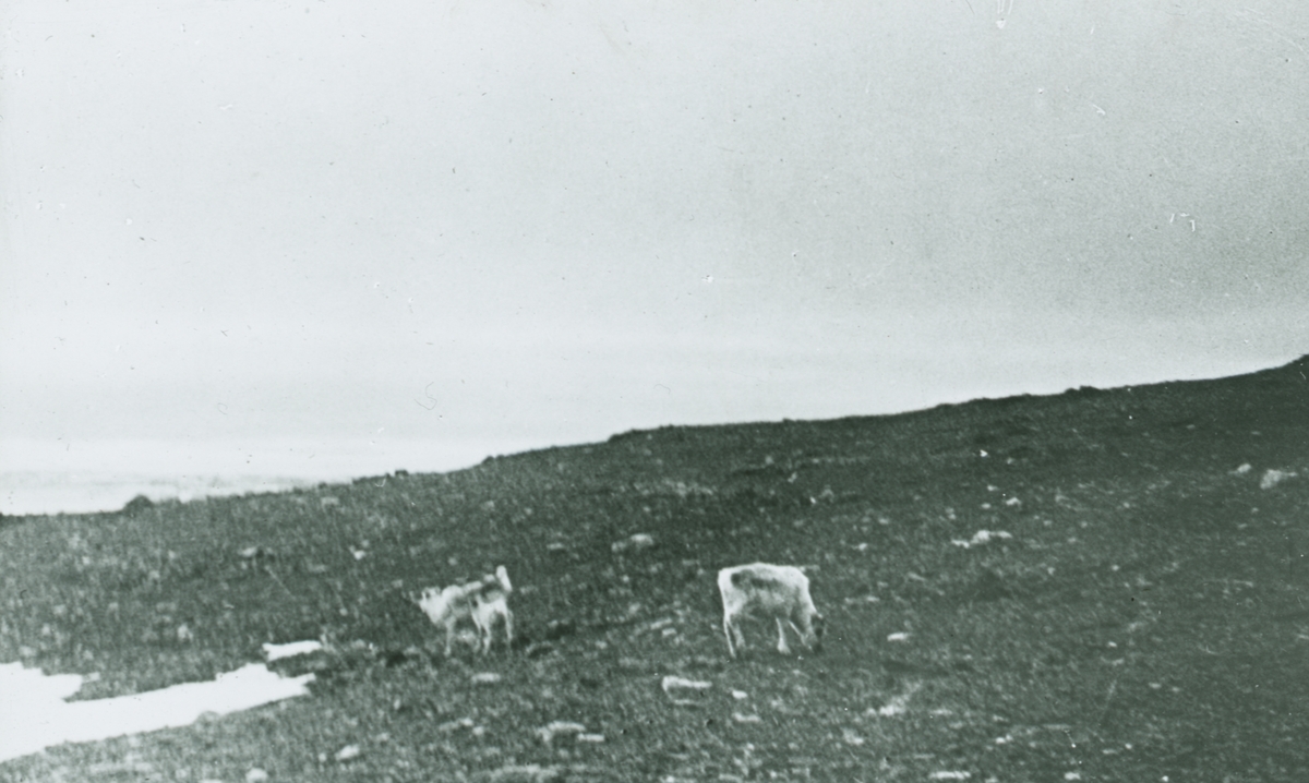 Glasnegativ med motiv av kor som betar i karg bergsmiljö.