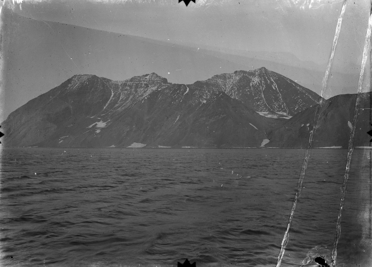Fotografi från expedition till Grönland. Vy över hav och berg.