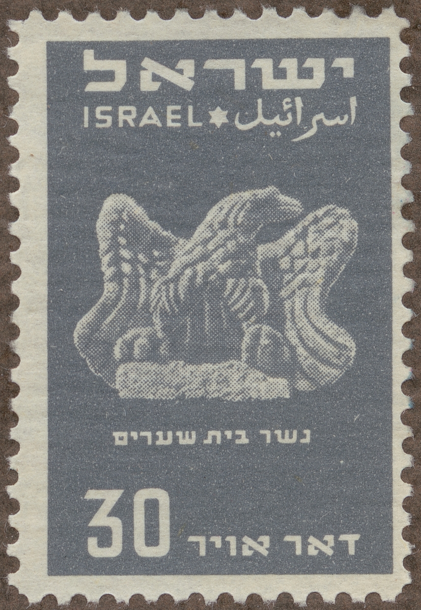 Frimärke från Israel, 1950. Motiv av Örn, symbol för lufttrafik