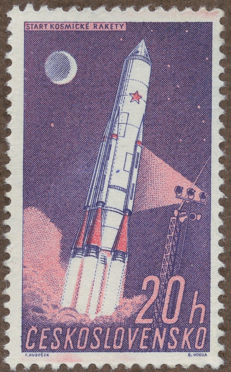 Frimärke från Tjeckoslovakiet, 1961. Motiv av Start av Rymdraket. "-Astronaut Serie-"