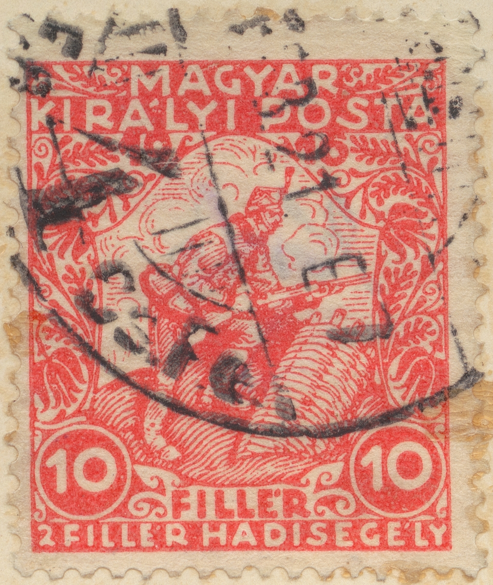 Frimärke från Ungern, 1916. Motiv av Husar i skyttegrav