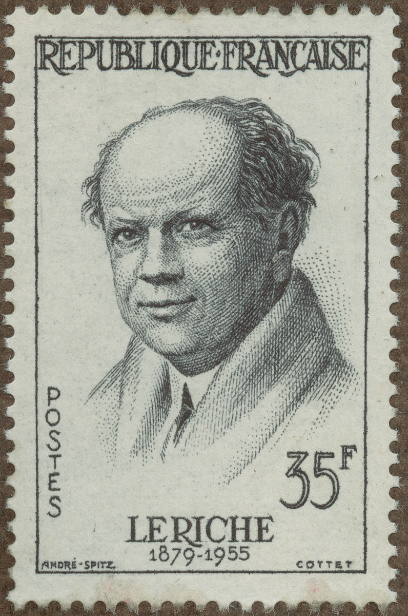 Frimärke från Frankrike, 1957. Motiv av René Leriche 1879-1955 Fransk medicinare De sympatiska nerverna