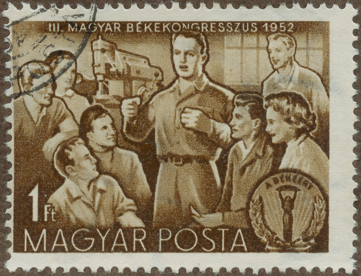 Frimärke från Ungern, 1952. Motiv av Ungersk fredskongress: 1952 -Propagandamärke för den 3-dje ungerska fredskongress-