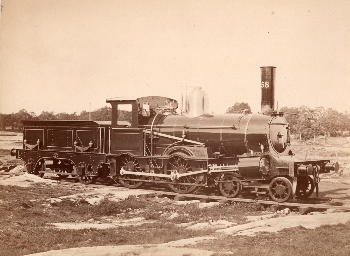 Lok nr 58 vid Norska Stats Banan. Tillverkat vid Nydqvist & Holm, 1881. No 148.