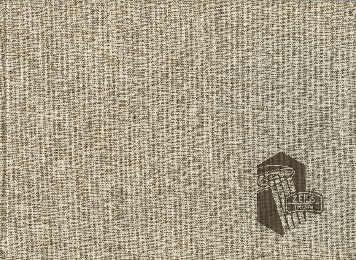 Omslag, framsida pärm av boken "Zeiss Spiegellicht System Zeiss-Wiscott in der Architektur : eine Sammlung durchgeführter Beleuchtungsanlagen". Boken gavs ut av Berlin-Zehlendorf : Zeiss Ikon A.G., Goerzwerk, 1937.