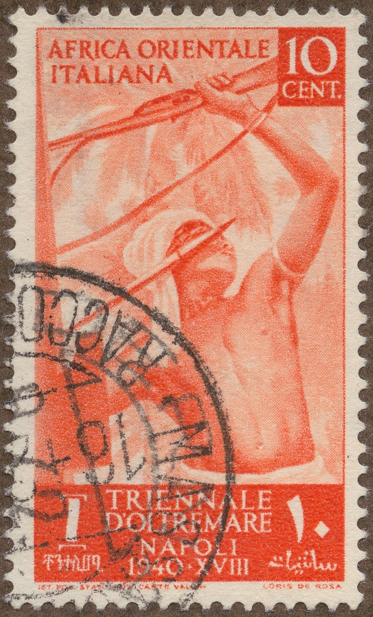 Frimärke från Italienska Ost Afrika, 1940. Motiv av Gevär och andra vapen -Första triennal utställningen: "Italien i Afrika"-