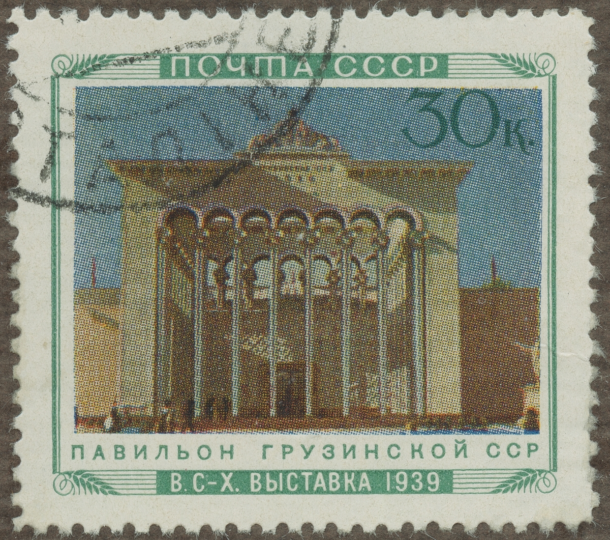 Frimärke från Ryssland, 1940. Motiv av Agrikulturutställning i Ryssland 1940 Paviljongen: Georgien