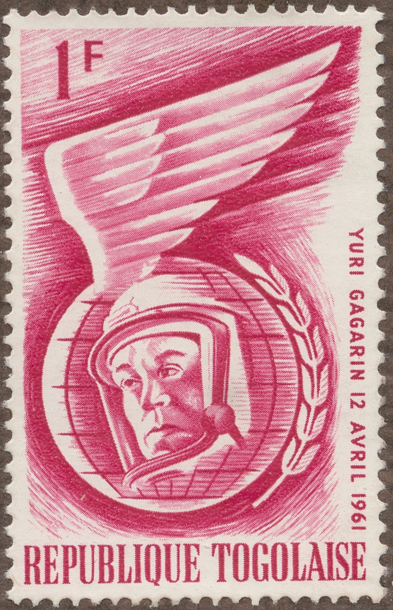 Frimärke från Republiken Togo, 1962. Motiv av Första världskosmonaut, Ryssen Yuri Gagarin: 12 april 1961.